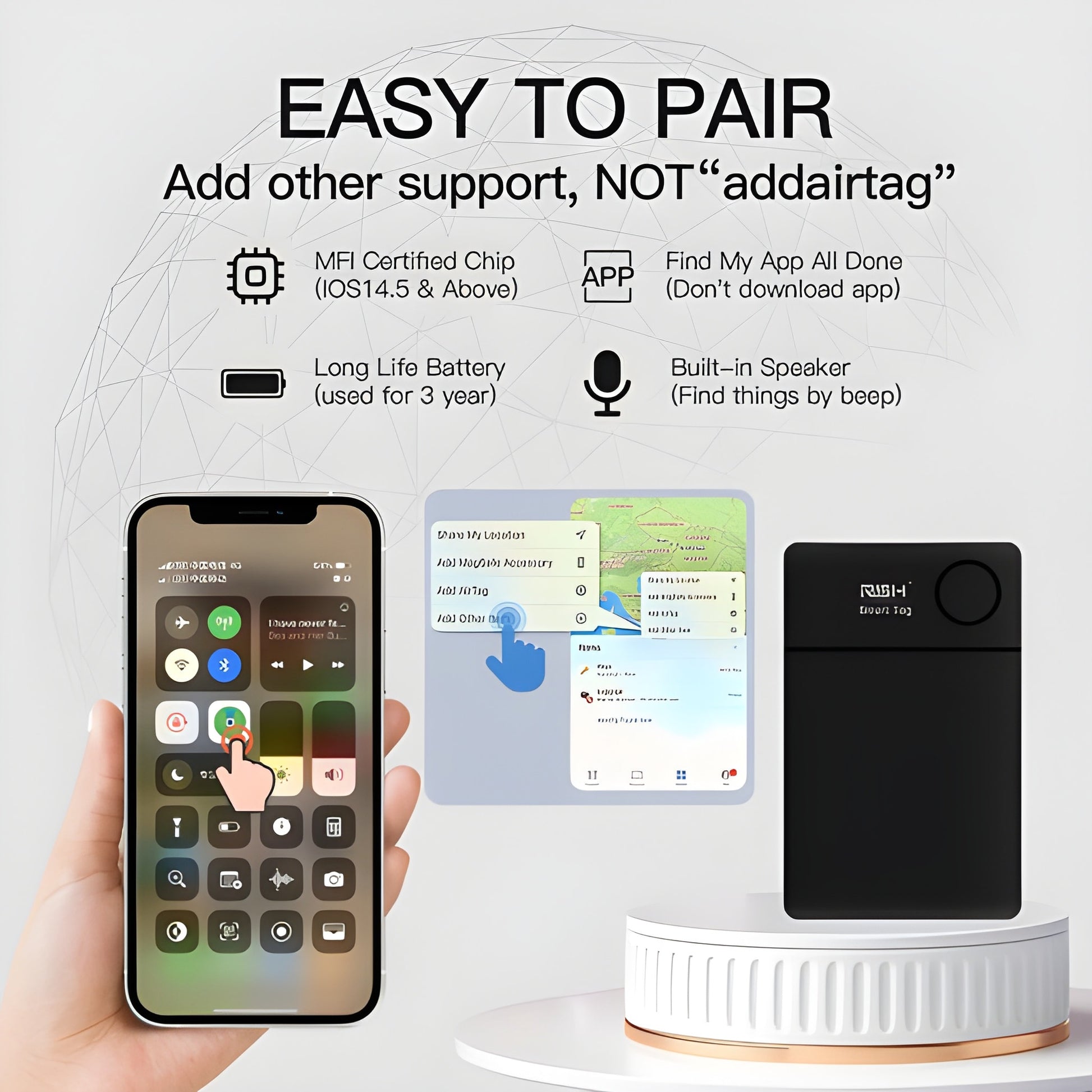 Compatibile con Apple Find My per localizzazione precisa, Design sottile formato carta, facile da inserire in portafogli e borse, Funzione di notifica anti-smarrimento in caso di oggetto lasciato indietro, Tracciamento Bluetooth GPS per localizzazione rapida, Ideale per portafogli, valigie, borse, zaini e mazzi di chiavi